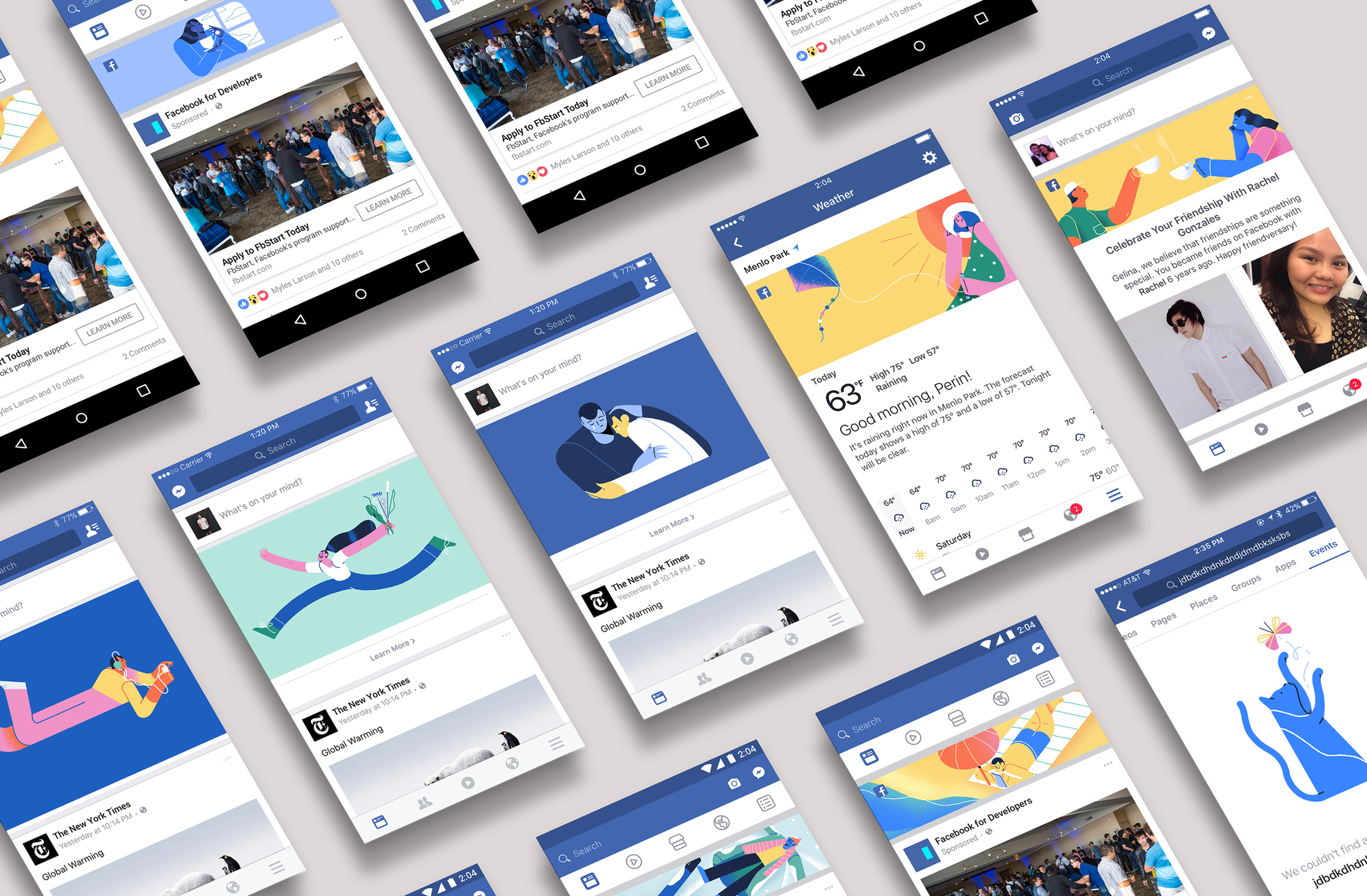 In 2017, Algeria became the new face of all of Facebook’s illustration and animation. We needed a scalable system that could support all of Facebook’s products. The designs had to be easily scannable, with universal elements that ensured consistency across all applications.